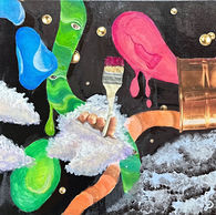 Emergence is a body of work examining transition as an active, unfinished state. Organic shapes appear to form little worlds within the paintings. allowing the viewer a glimpse into a personal journey from childhood into adulthood, academics into the workplace, and passive observation into authorship. Rather than presenting resolution, the works dwell in these moments of tension.